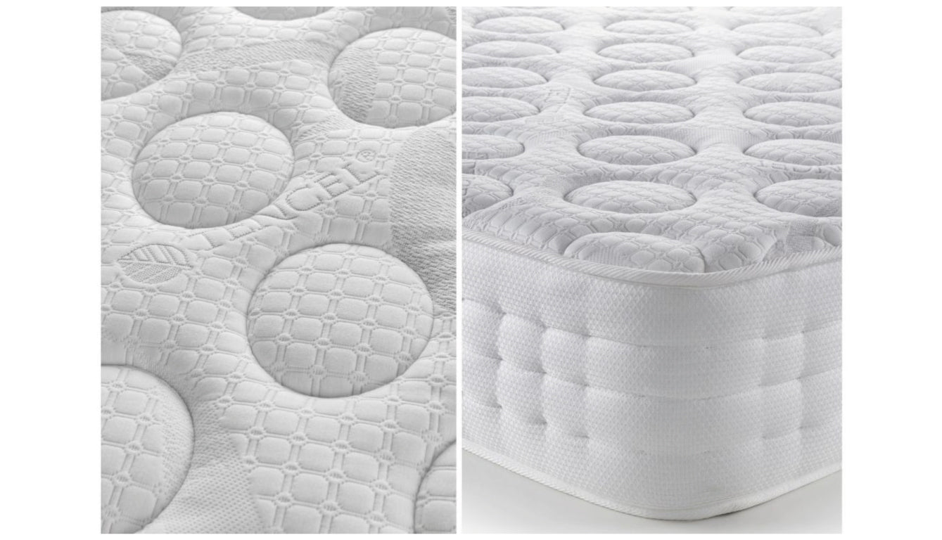 The Capsule Orthopaedic Mattress features a 12.5-gauge Bonnell spring unit, a 900gsm spring insulator pad, and a 500gsm polyester filling. These elements ensure a restful night's sleep. It has a soft Damask fabric cover, a contrasting quilted border, and is hand-tufted with felt washers for durability. This mattress is available in 90cm, 135cm, and 150cm sizes as part of the Capsule Mattress Collection.