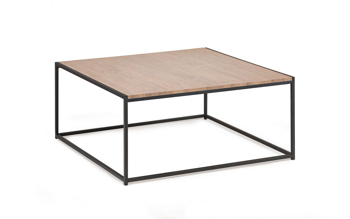 A cool, modern square coffee table designed to add a contemporary touch to any home or work place. Its simple clean lines, delineated by a subtle, black coated metal frame are complemented perfectly by a warm, Sonoma Oak foil, to create a very stylish and sleek product.